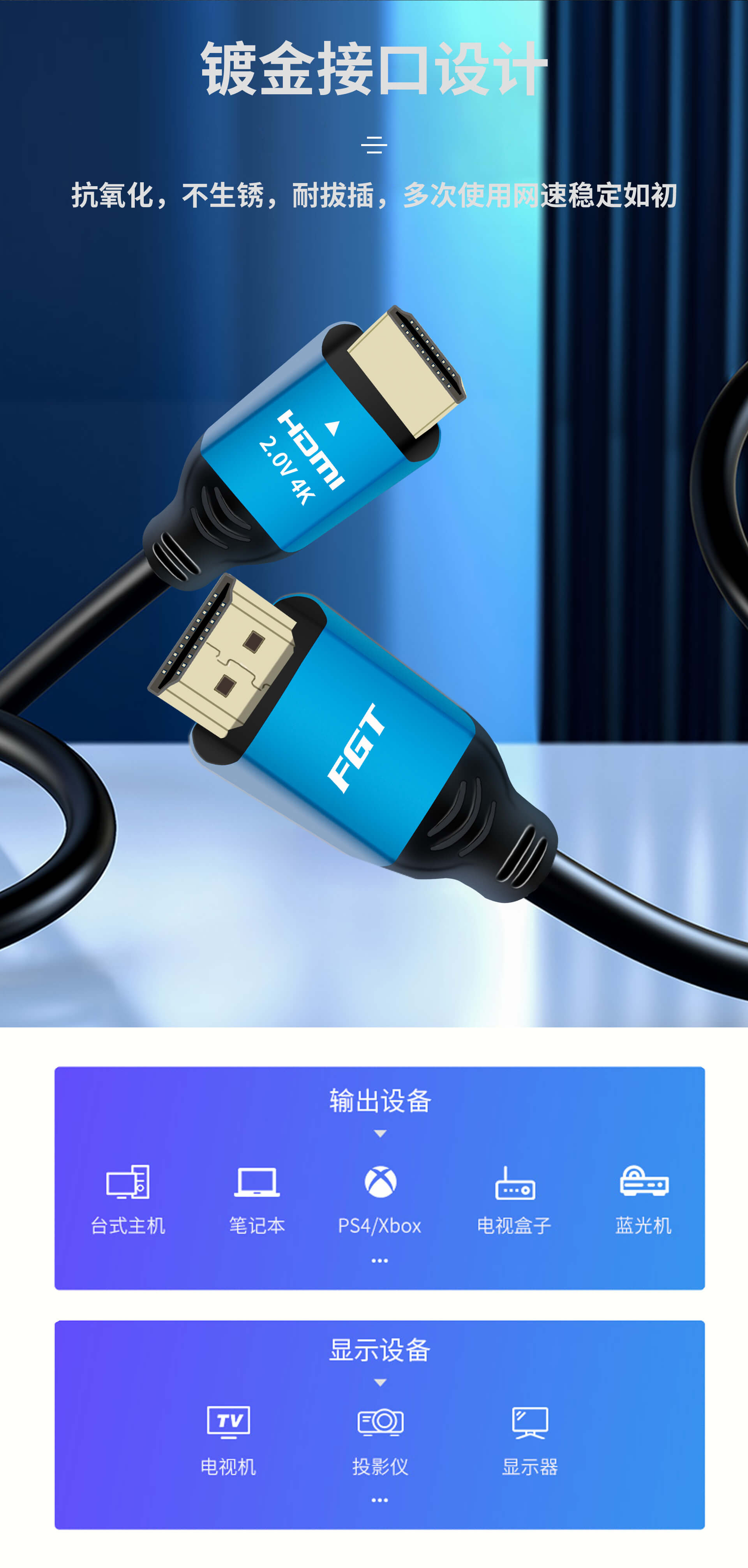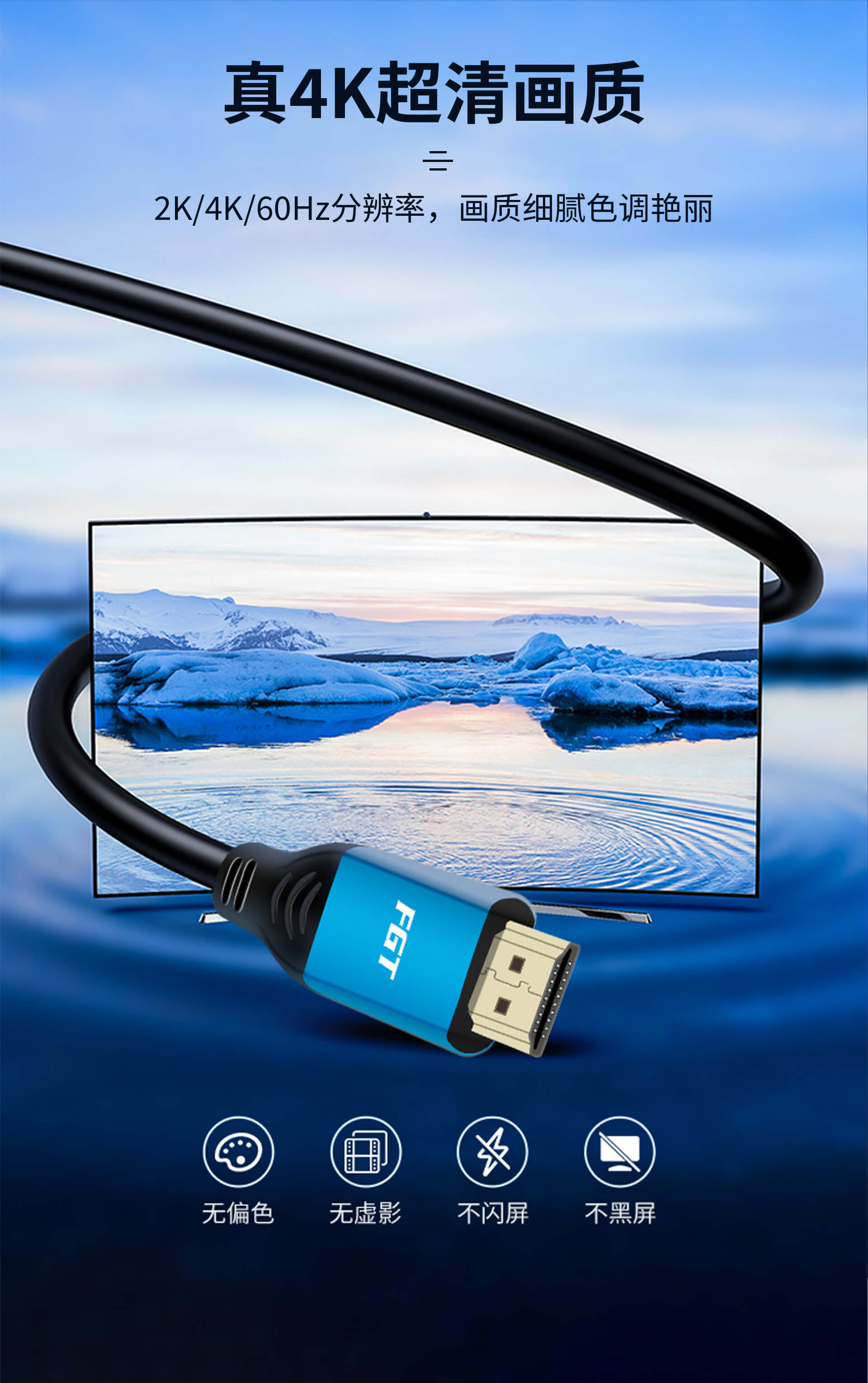 FGT HDMI2.0高清線是一款4K超高清HDMI視頻連接線。HDMI線采用升級版HDMI2.0協(xié)議,支持4K超清分辨率,3D立體成像,HDR動態(tài)分析,細(xì)節(jié)清清楚楚,還原真實(shí)世界;HDMI2.0高清線可用于大屏辦公會議、家庭超清影院,支持多屏鏡像和擴(kuò)展模式,盡享大屏?xí)晨祗w驗(yàn)。